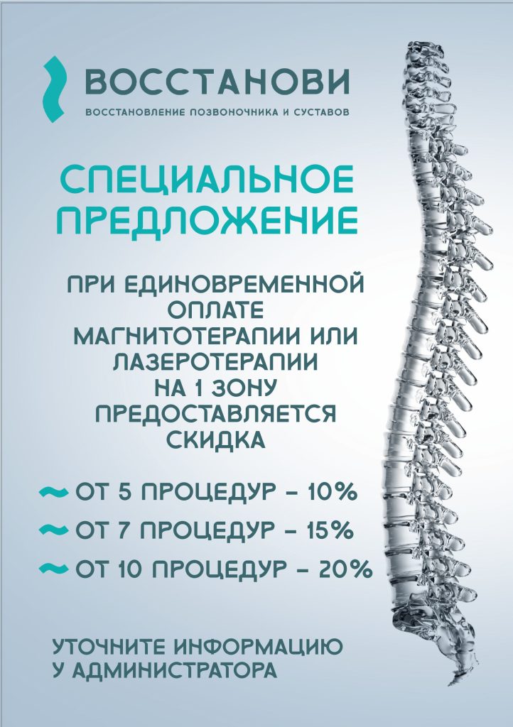 В настоящее время в центре проходит акция. При единовременной оплате процедур можно получить скидку.